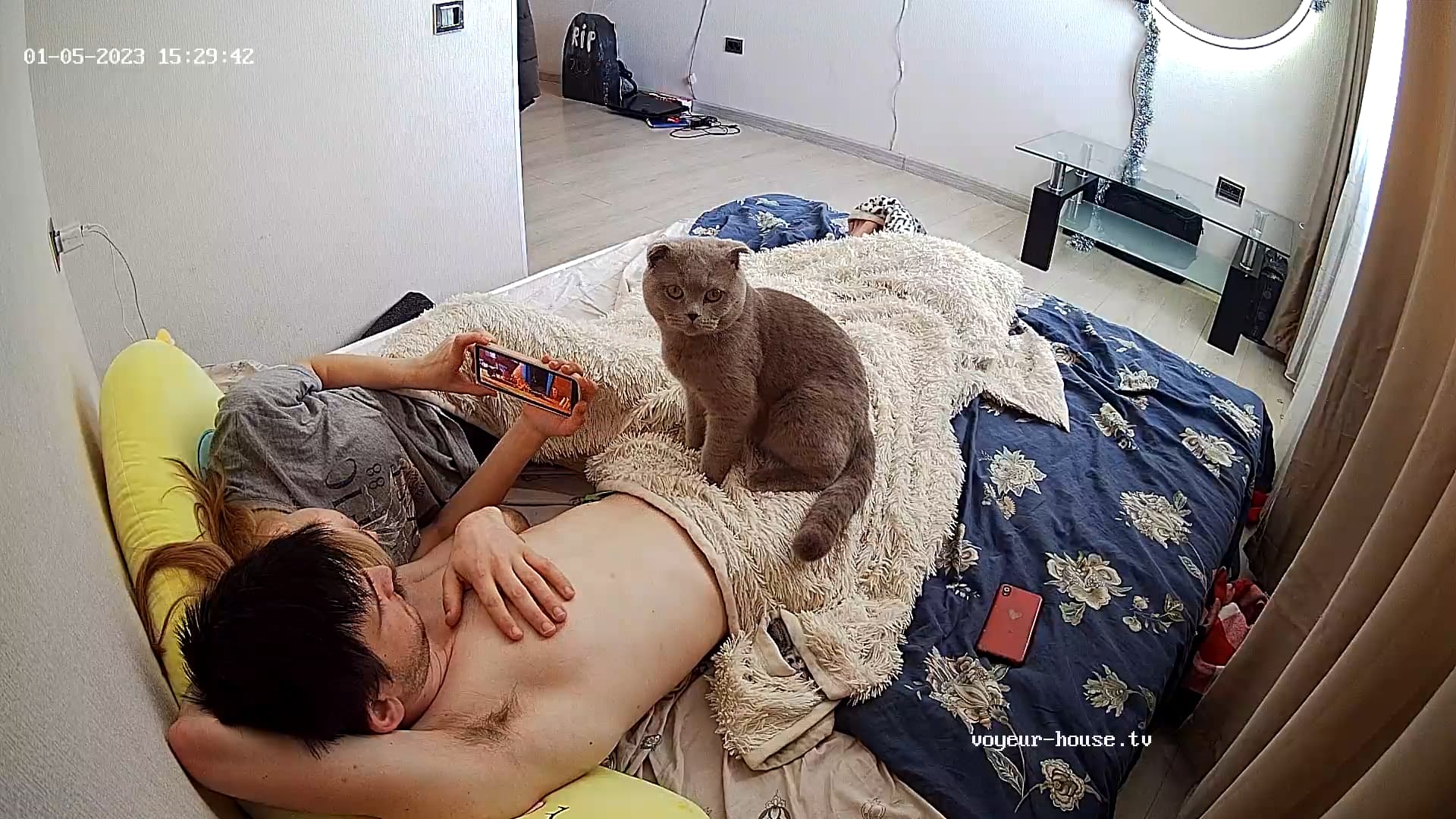 I, believe it’s just the way they have sex. Either one of them is not very shy IMO. Just very spontaneous.when it comes to sex. Cameras probably don’t even come to mind.beautiful couple seems he’s just enjoying lunch at the moment