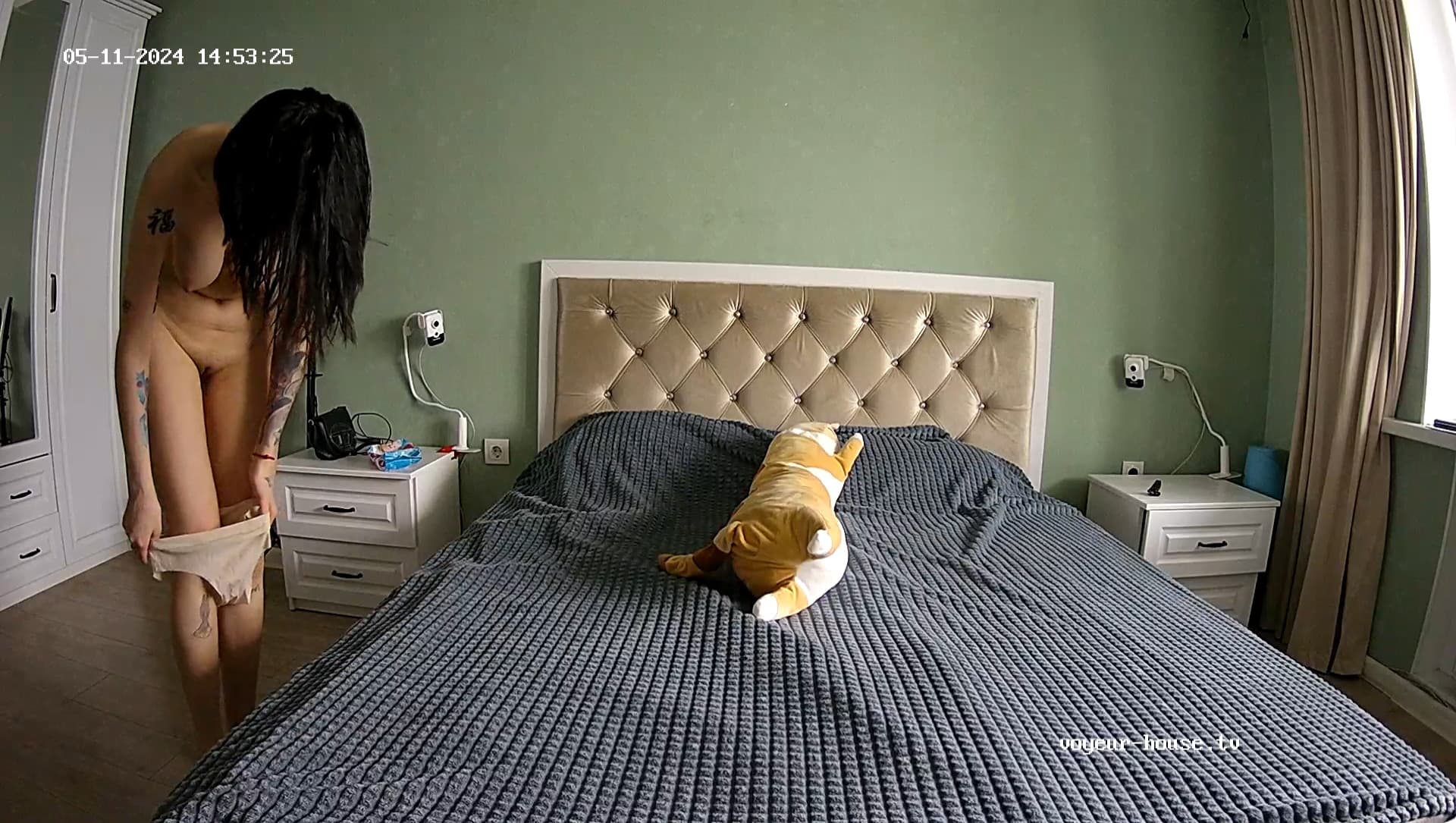 Does anyone understand why she hits the camera and makes it fall?
