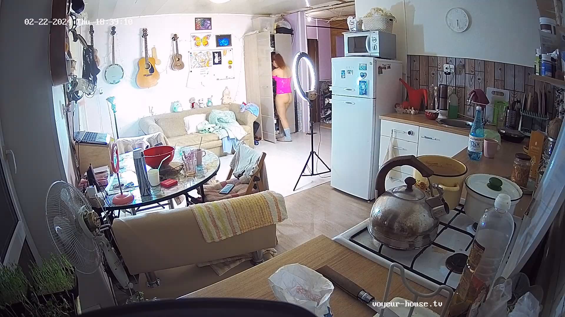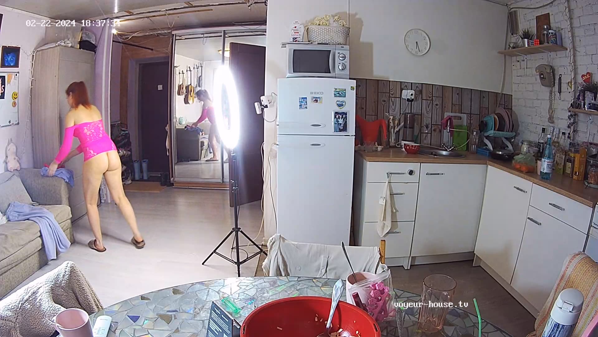 Derek and Gina trying to fix the cam to the wall.