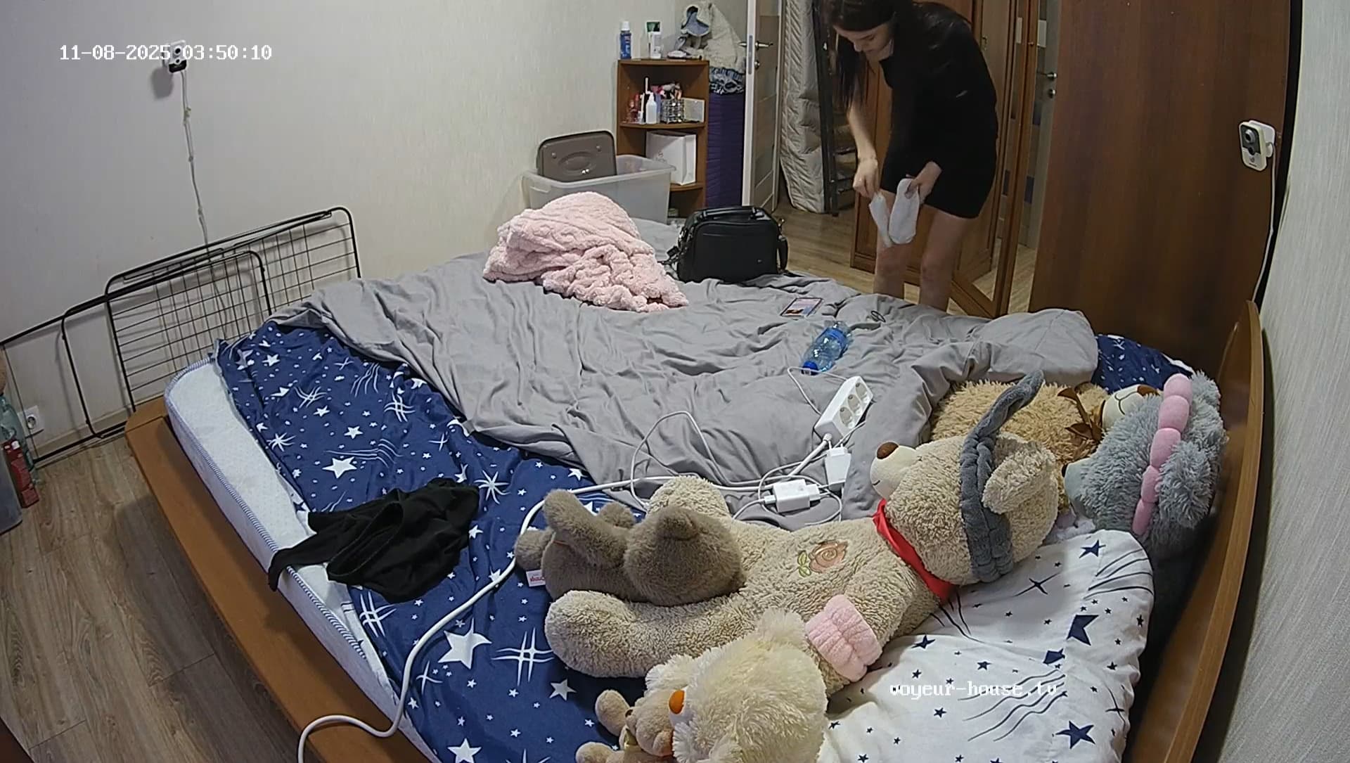 And the bedroom is being thoroughly cleaned.
