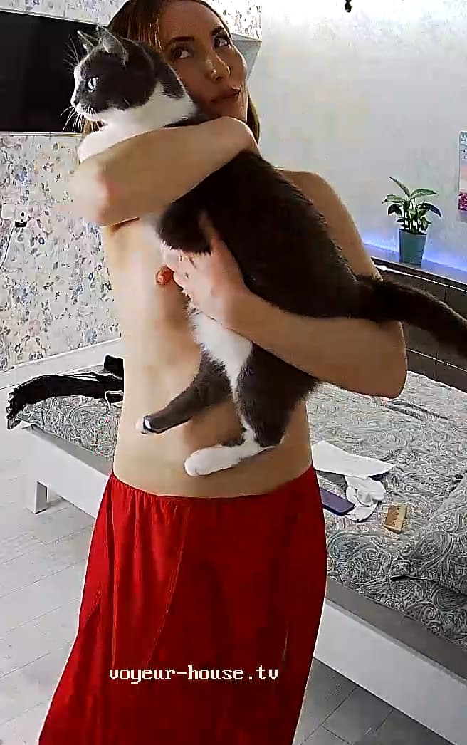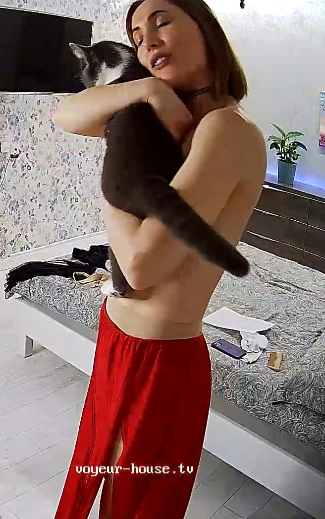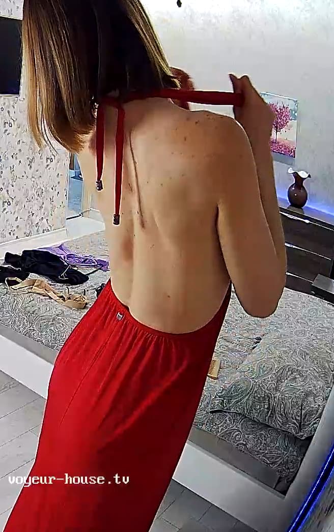 Clara has on my favorite red dress WITHOUT panties! Hot stuff!