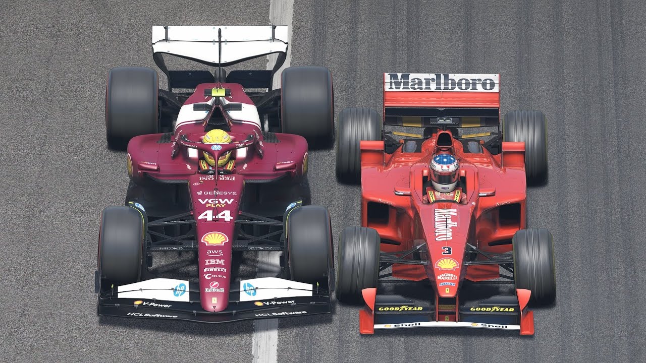 A nice comparison on how the cars have changed and how much quicker Schumacher’s Ferrari is, compared to today’s Ferrari.