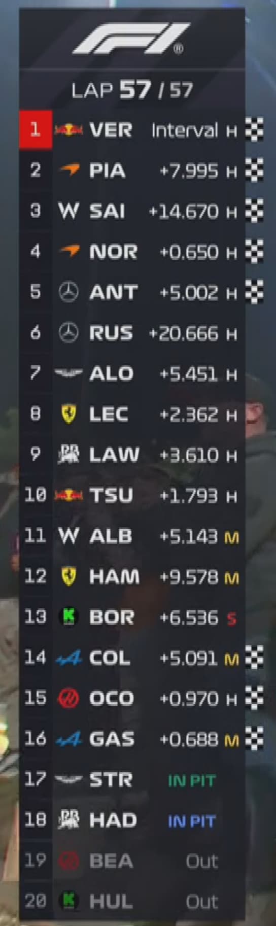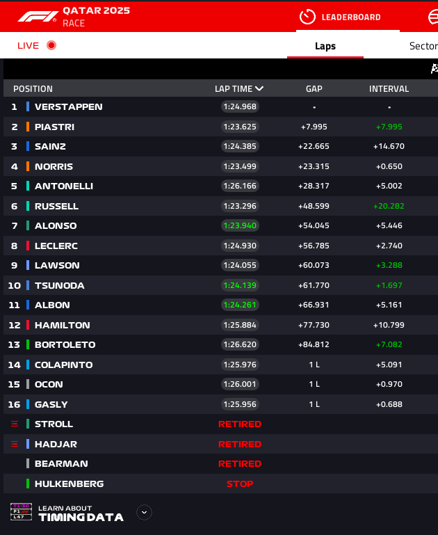They’re currently on lap 49 out if 57. And Norris is still 26 secs behind.