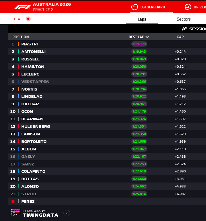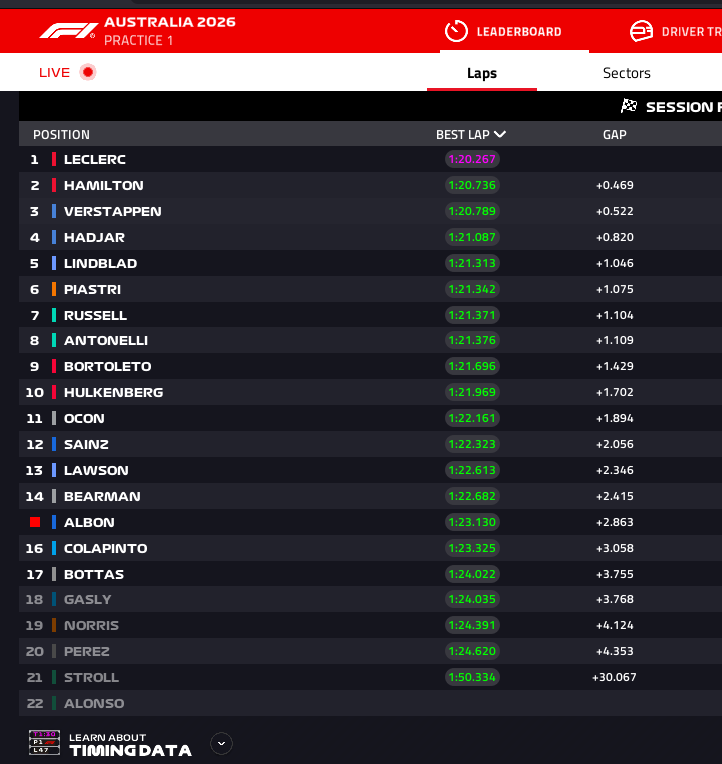 Looks like Ferrari & Red Bull have set the pace, I know it’s only FP1.