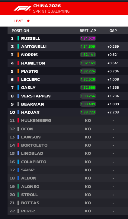 Looks like it’ll be a two way race, between Mercedes & McLaren. I know it’s just the sprint.