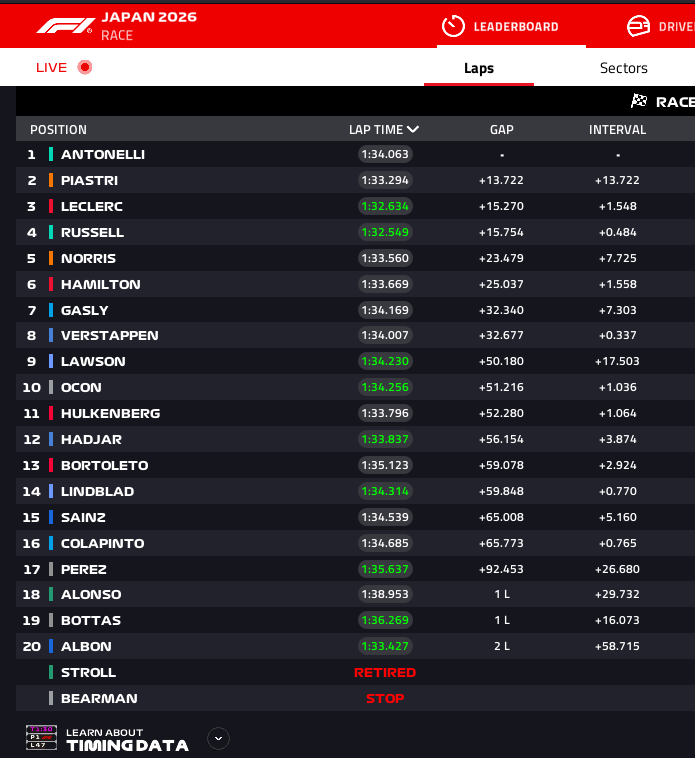 Stroll is dead last. What is he doing nowadays? ![]()