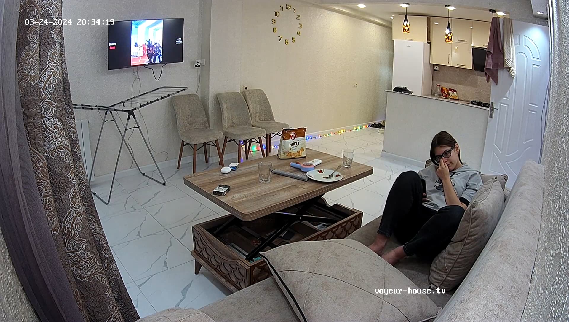 Now she’s lying on the couch and he’s in bed?