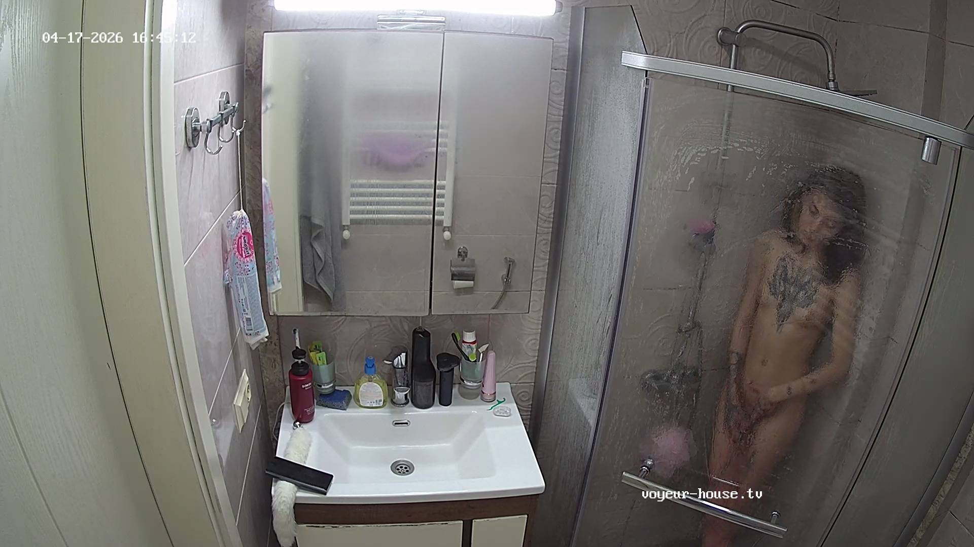 Bathroom camera too high again.