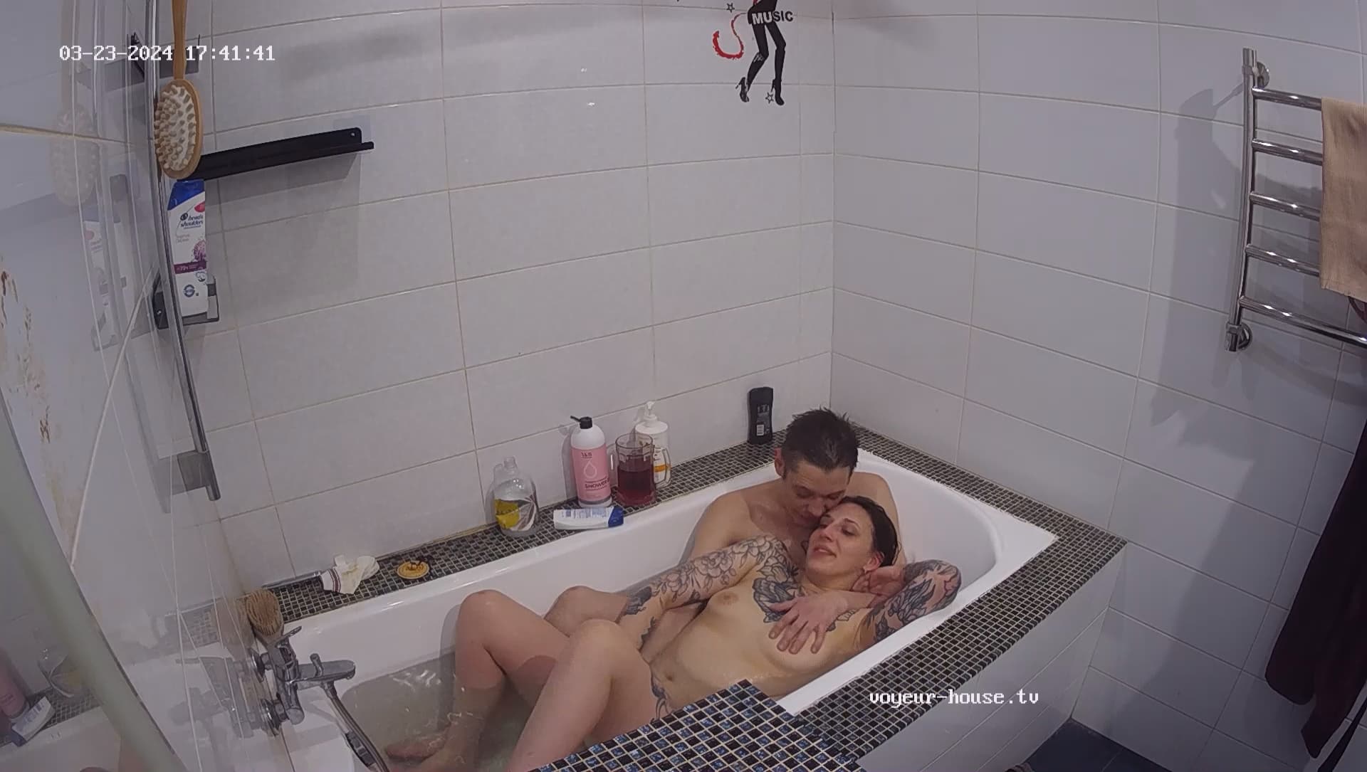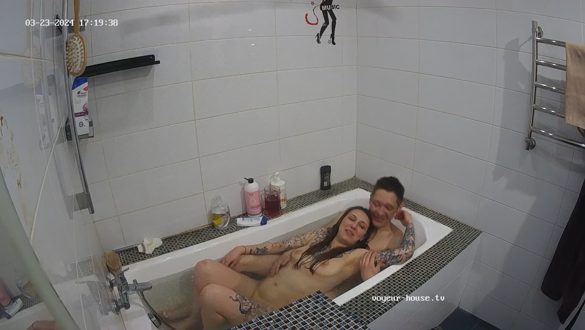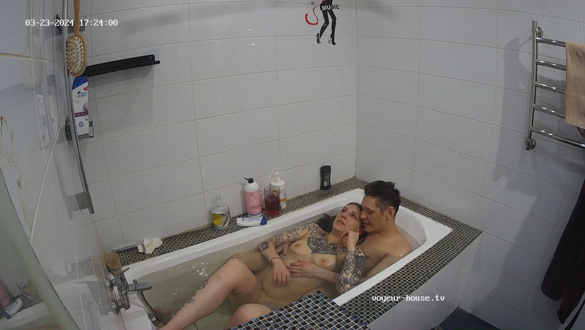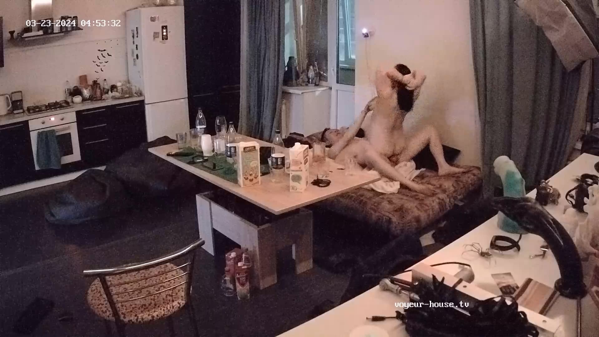 further up, there is a clip when they went to bed, but you can only see the moving of hands etc under the blanky. Someone said, Henry had a short dip-in on the livingroom-floor. Or was that Sibilla?