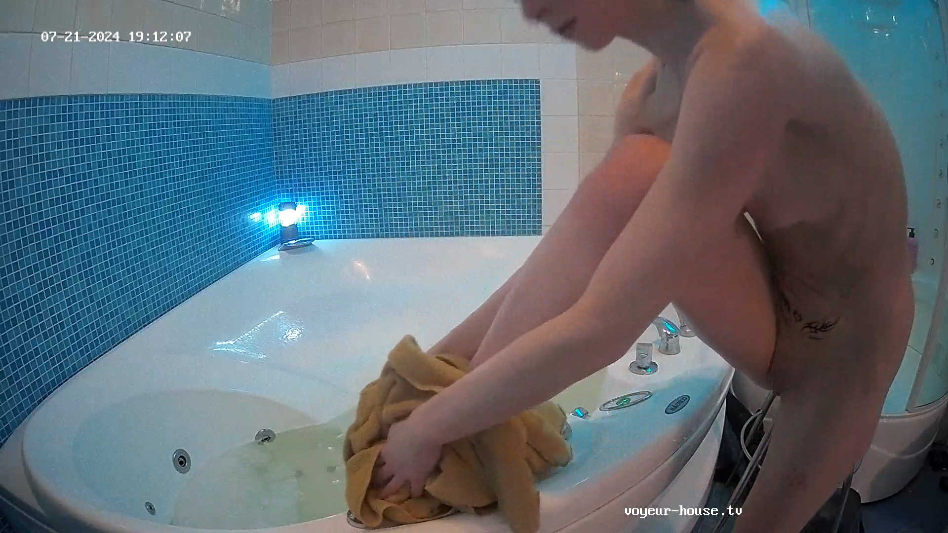 Hot female and male participants taking a shower/bath