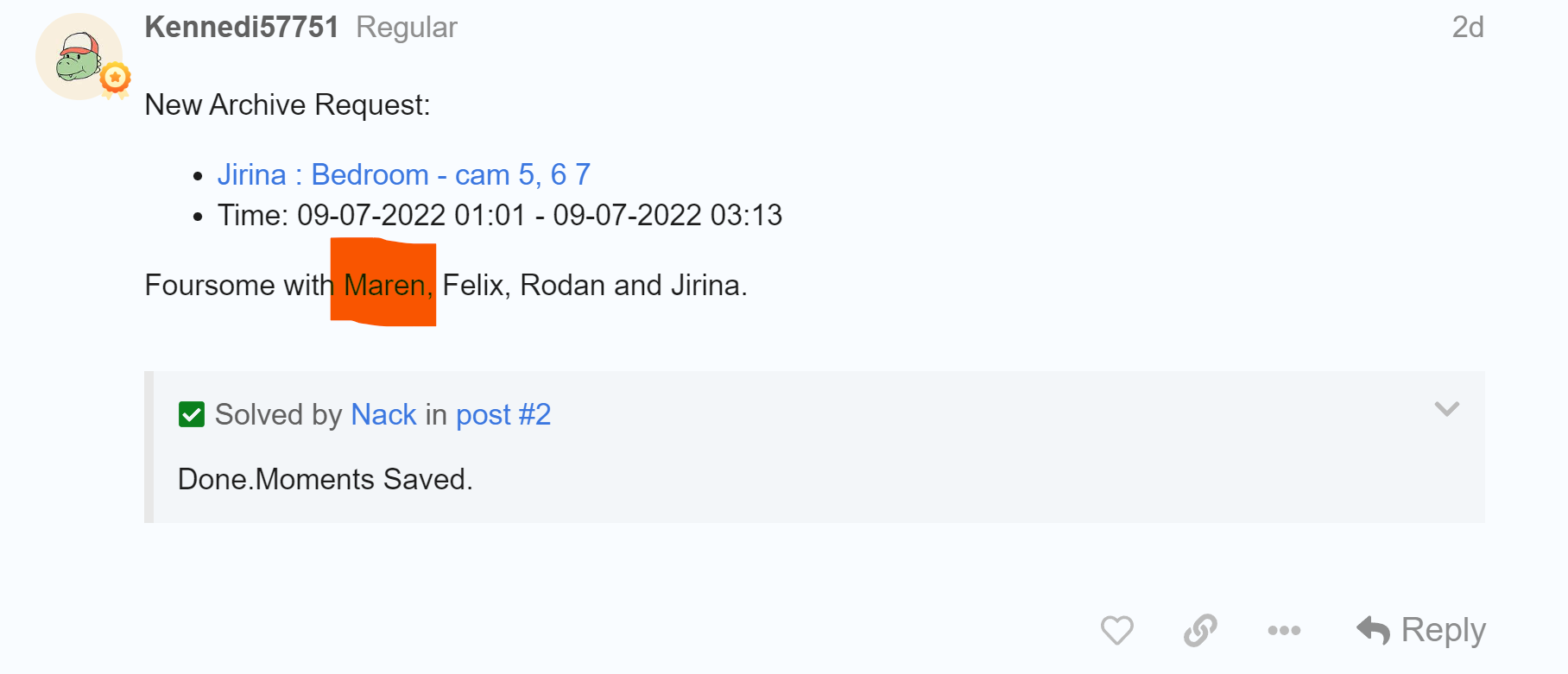 - Jirina : Bedroom - cam 5, 6 7