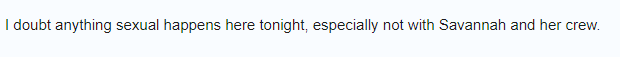 Not just him. I doubt anything sexual happens here tonight, especially not with Savannah and her crew.