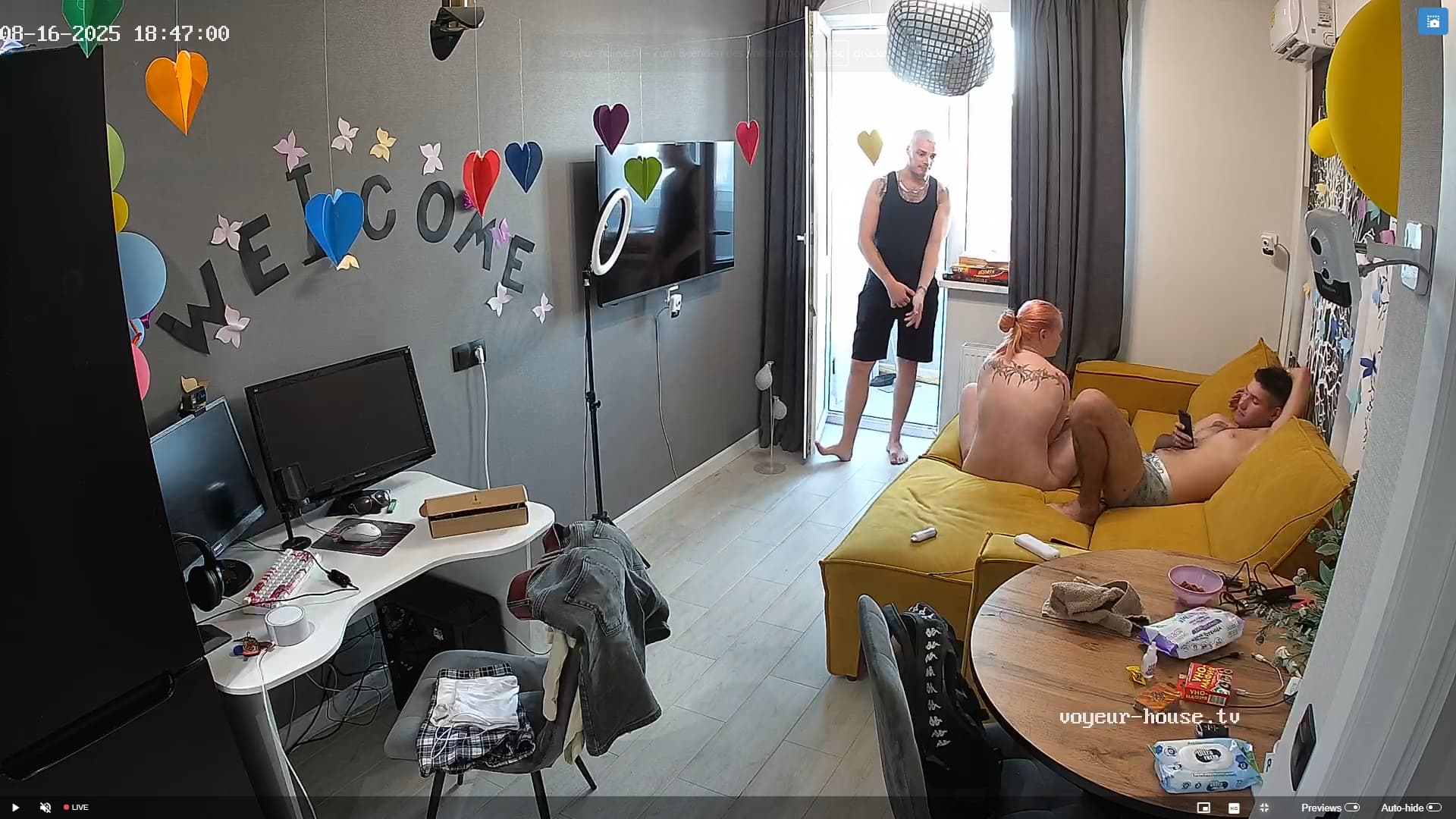 Jorge wants to fuck, you can tell by his looks and efforts, when Yuneska fucked Radu on the couch next to him lately.