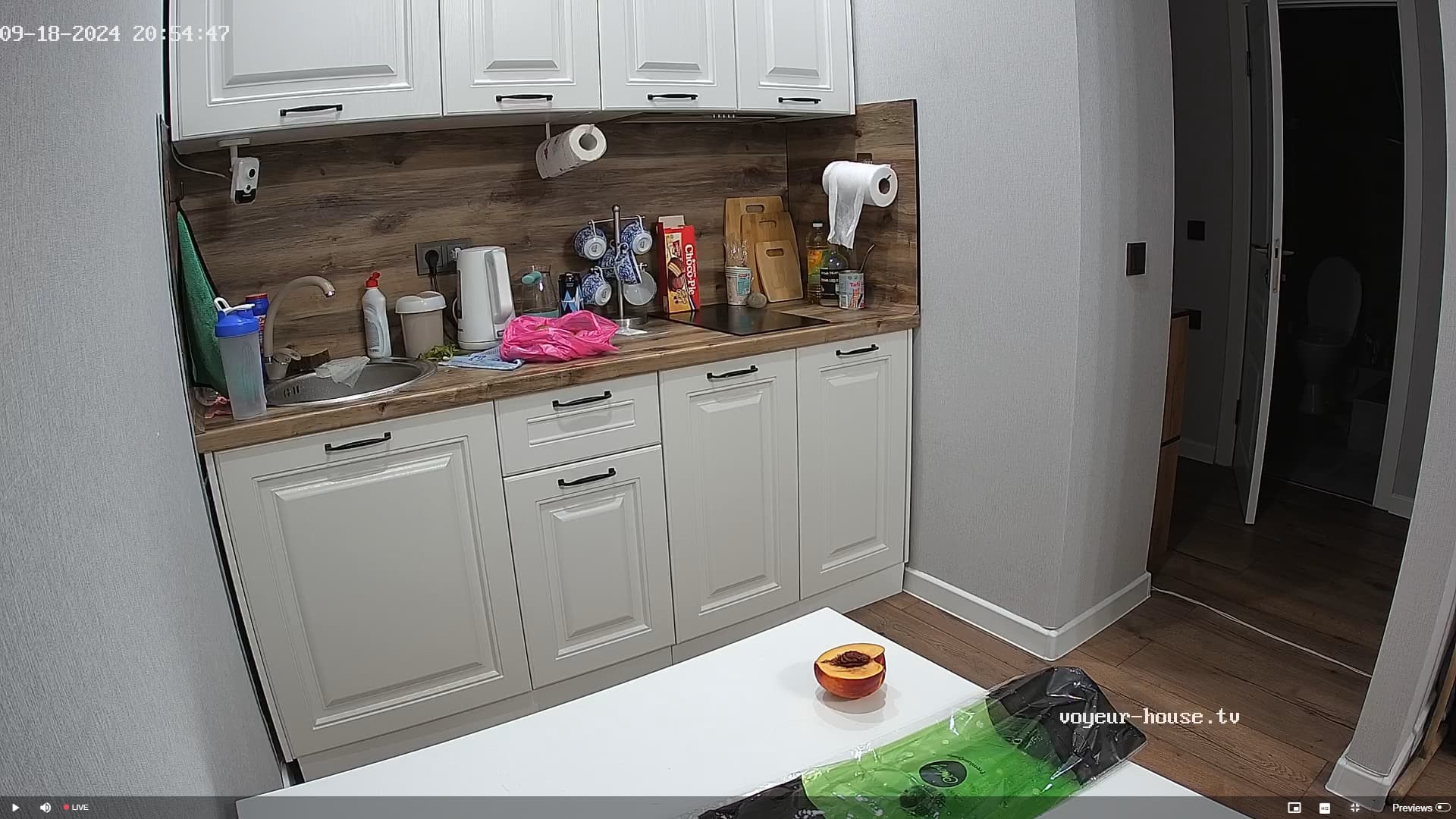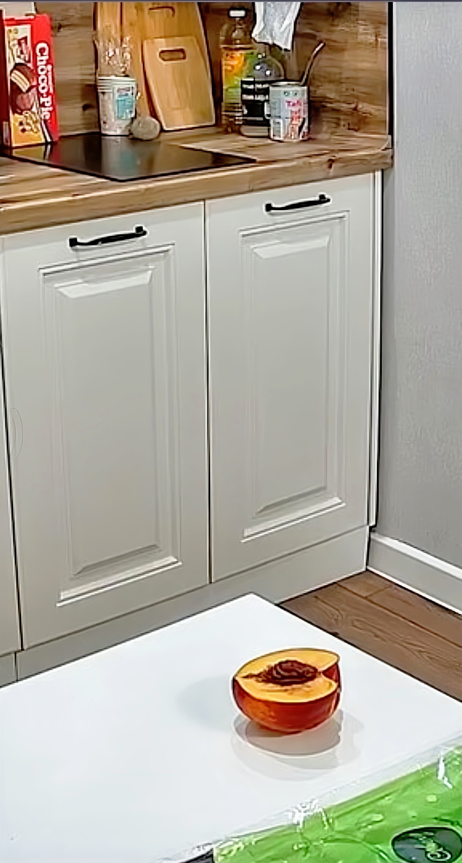 I honestly hadn’t seen the peach on the table at the time when I posted, but was amused when it was still there untouched several hours later.