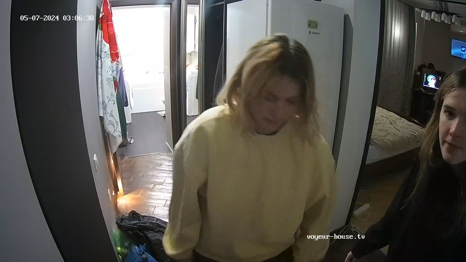 Surprised Bardy is still dressed. New guest not a stranger I think as she is washing up.