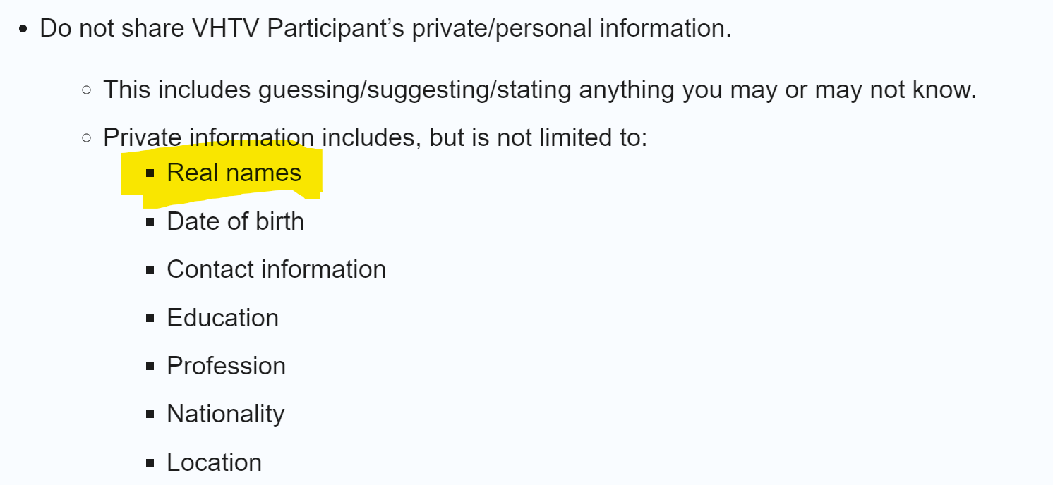 This is only allowed if the person also references VHTV in her/ his profile on the external site / project: