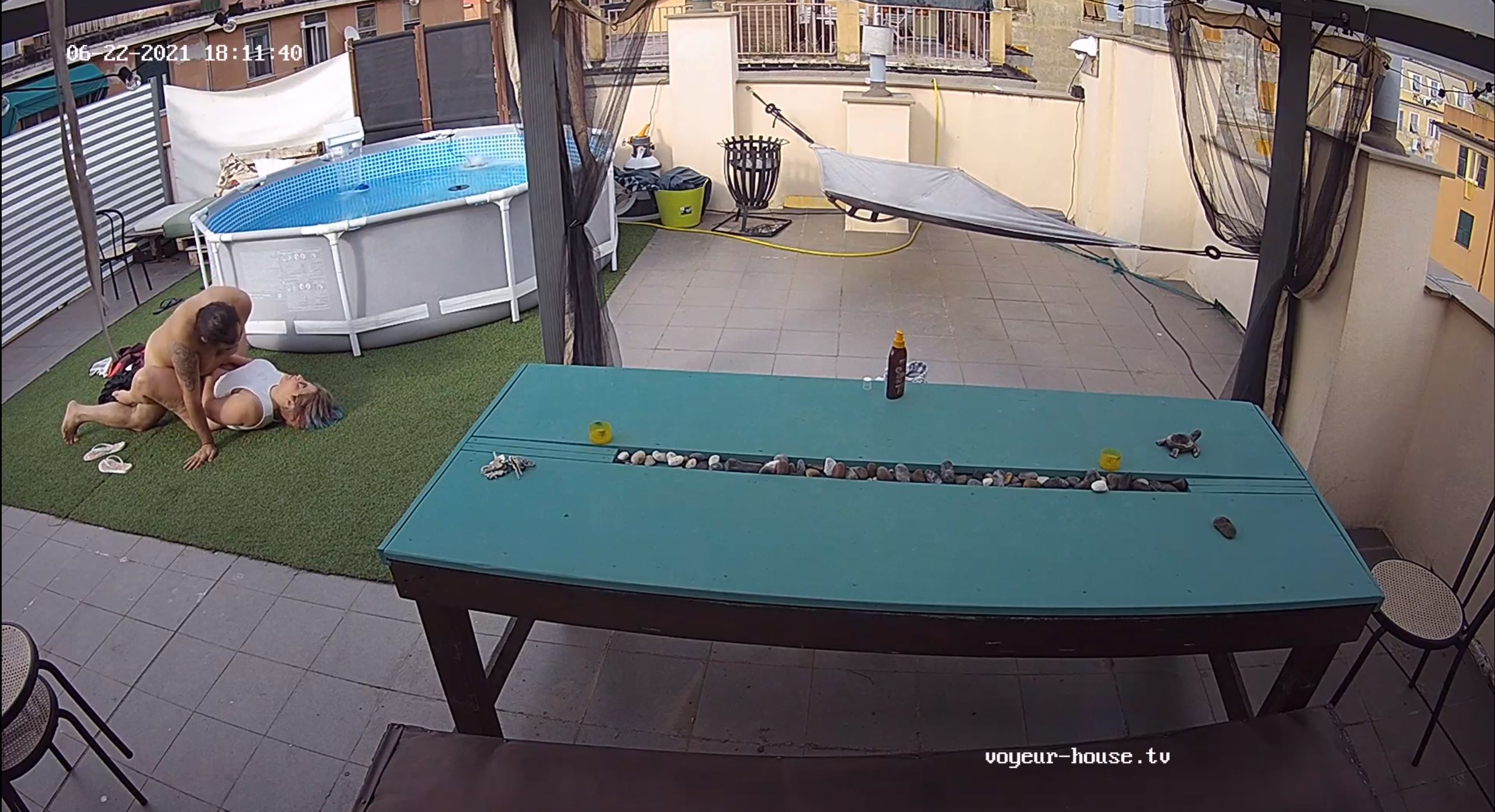 it goes nearly on the same posiion, if you look the new camera in the newer screenshot it takes most part of the pool