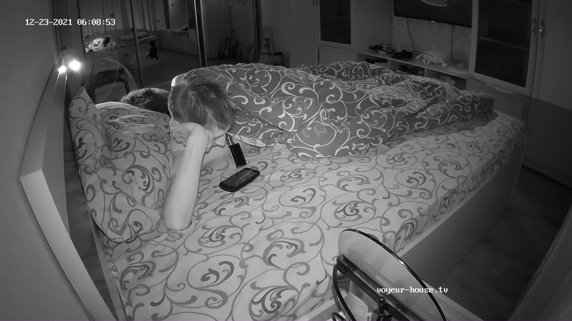 Mikl is in his bed, watching…