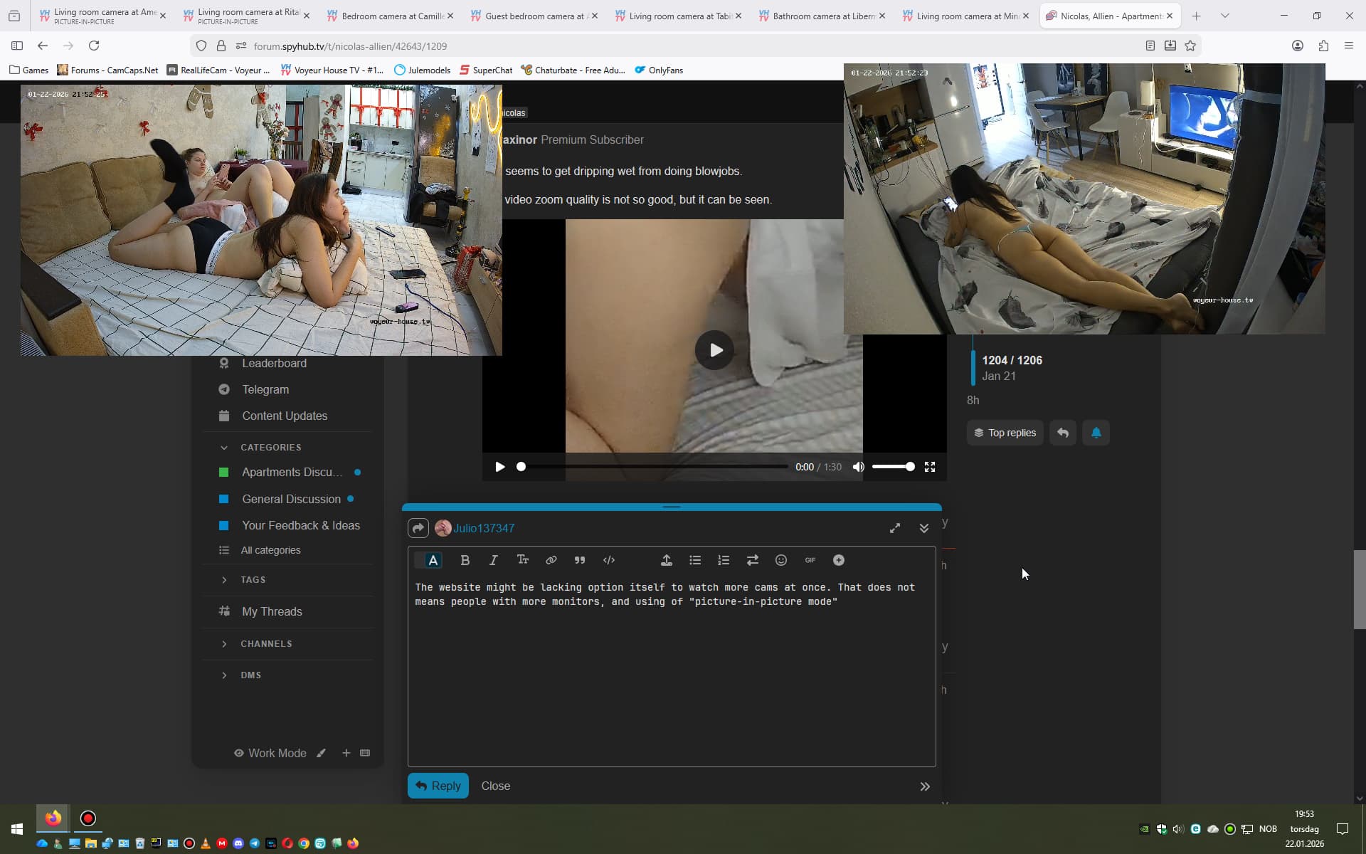 The website might be lacking option itself to watch more cams at once. That does not means people with more monitors, and using of “picture-in-picture mode” and other metode can not enjoy “360” view of something in a room.