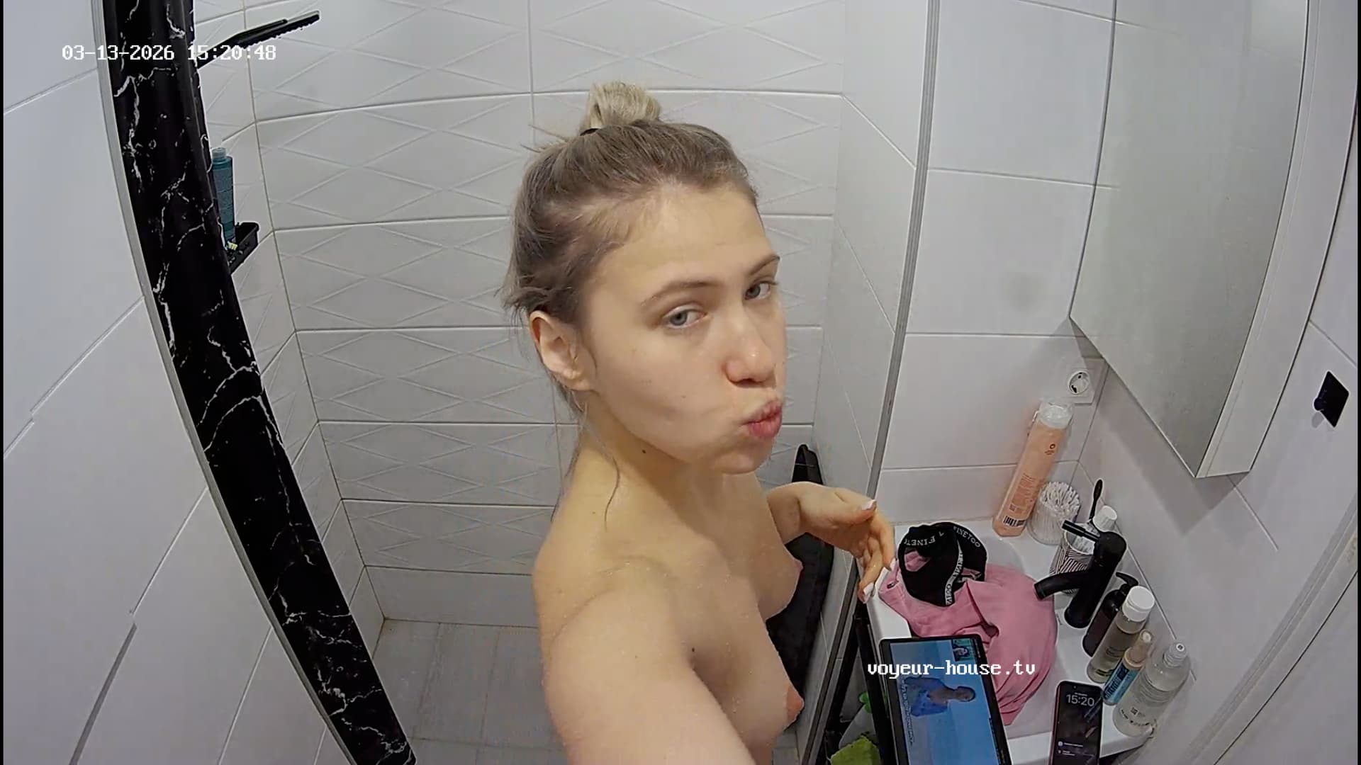 She obviously goes to a gym. I wish she’d get some weights so we could watch her sweating, pumping some iron. I also wish she’d practice her poses oiled up and in the nude. Wonder how serious she is about this. Will we see her beefing up?