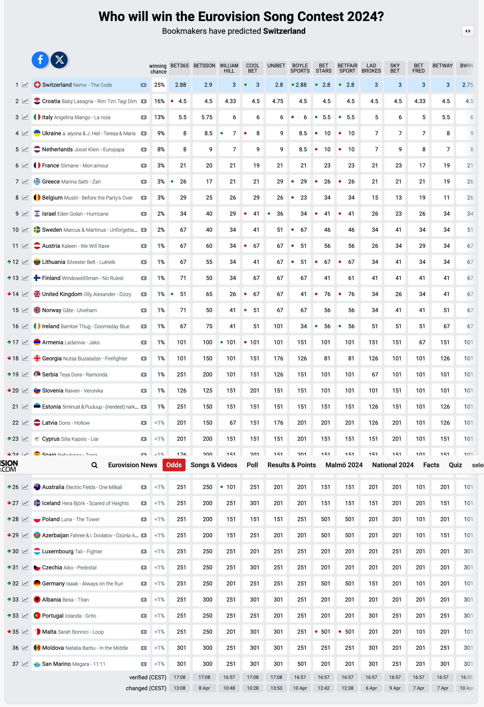 Who will win the Eurovision Song Contest 2024?