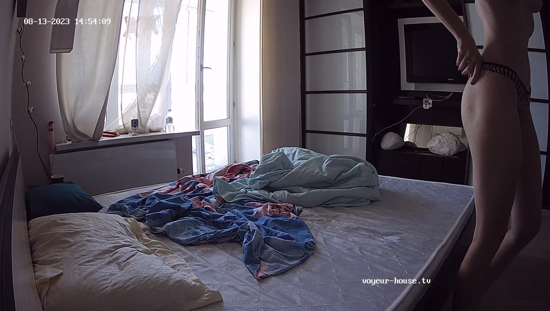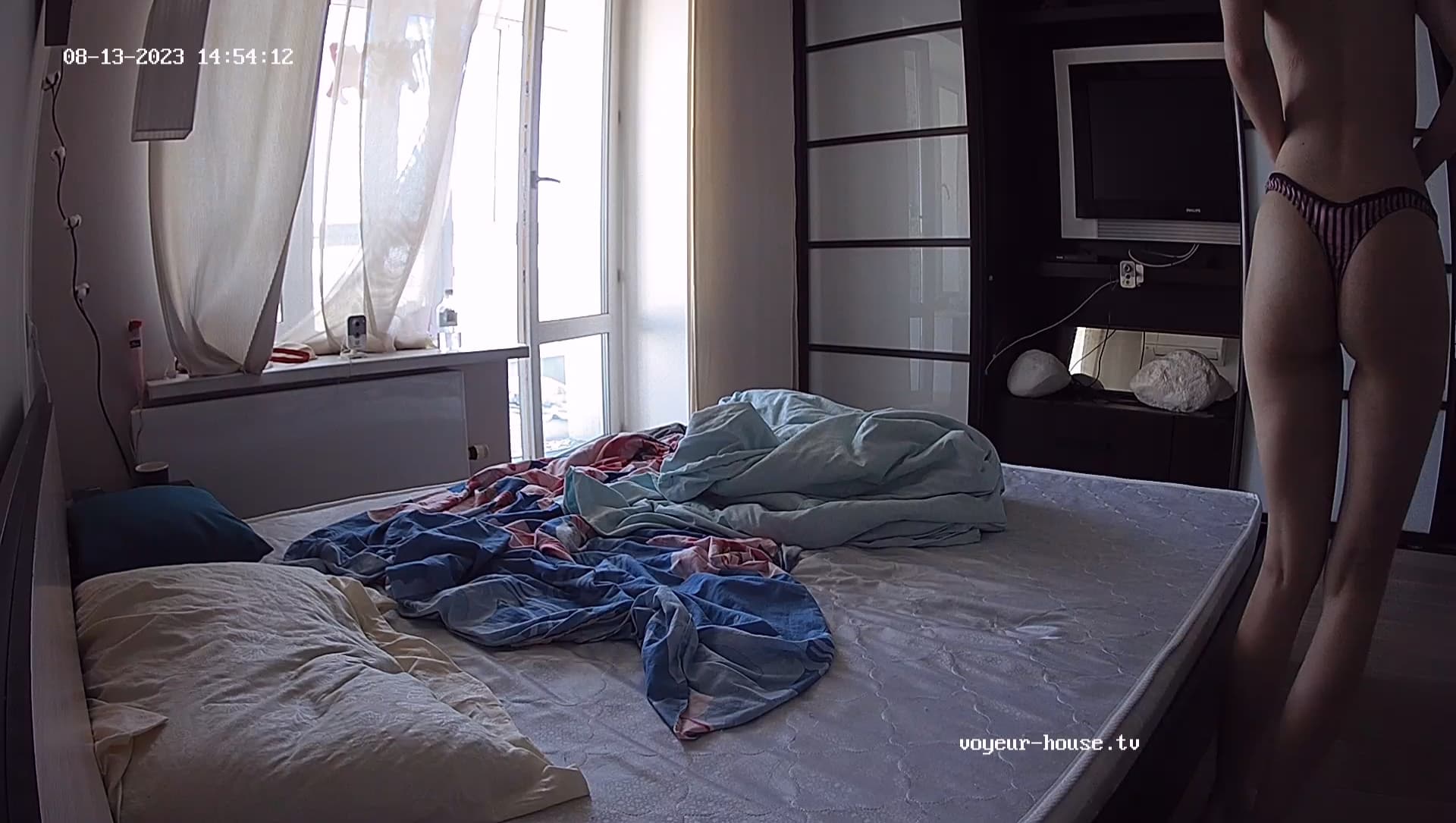 He dumped it next to the bed, but made sure, noone steps into it… I guess