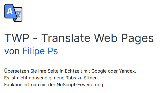 I’ve only used it a couple of times, so far, but I like it. It also translates with more than just Google and Yandex. You can use Bing and Deepl, too, although I hate the way Deepl always opens a new damn tab. Google, Yandex and Bing translate within the current tab, which I enormously prefer. Thanks for the tip.