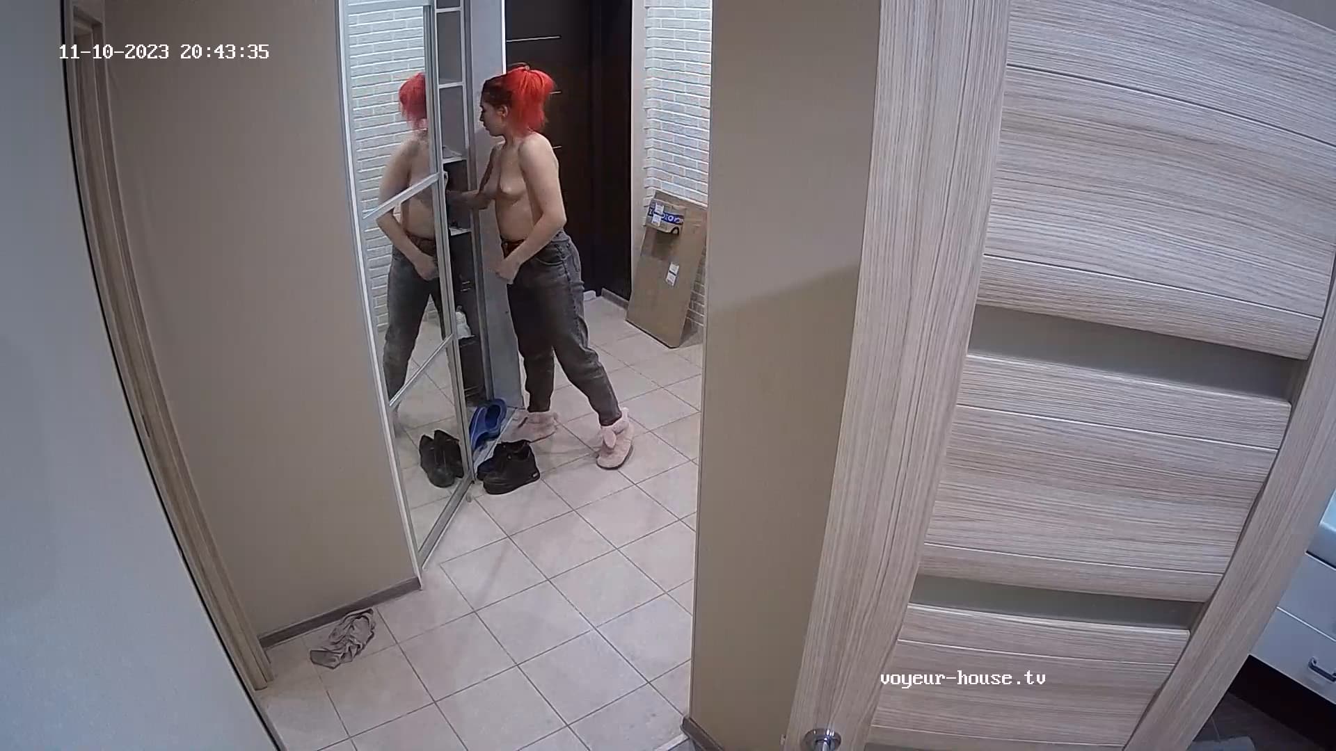 Sometimes there was “half the ceiling” visible, and therefore little of the hallway between kitchendoor and bathroom, sometimes the spy-hole in the door was just in the picture, and lately you mostly see the floor.