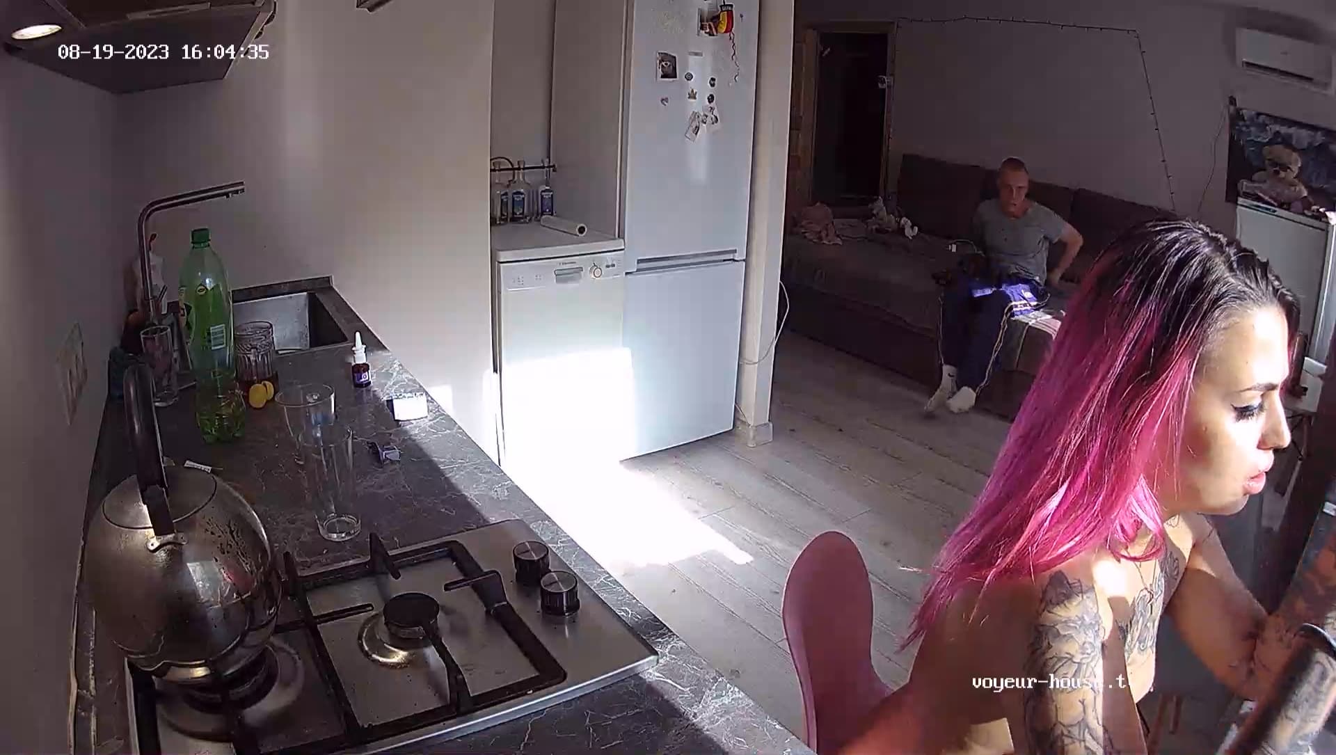 Trisha had a string between her legs when she changed in the wardrobe, after he denied to fuck her, Trisha went to the bathroom and came back without panty.