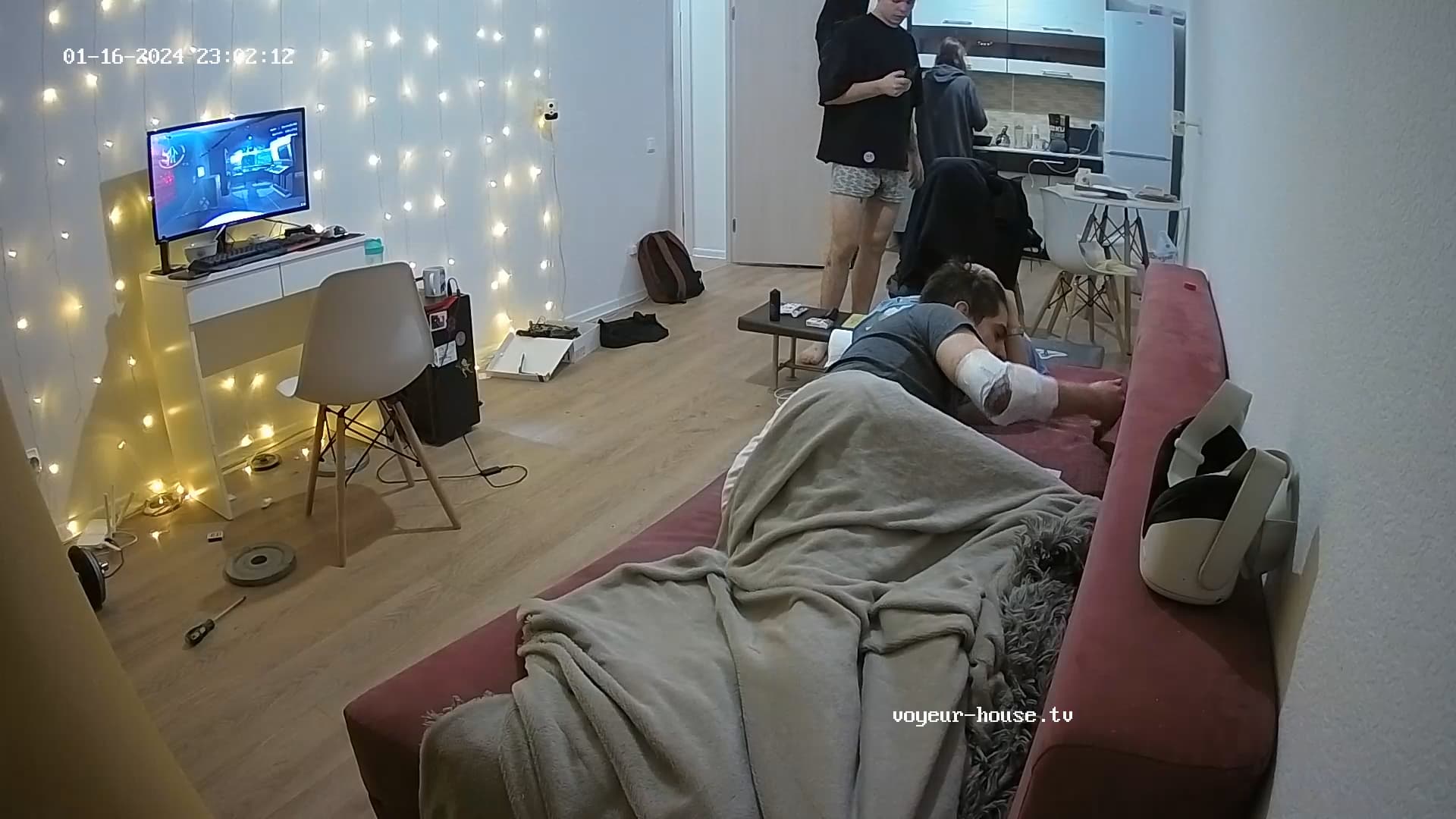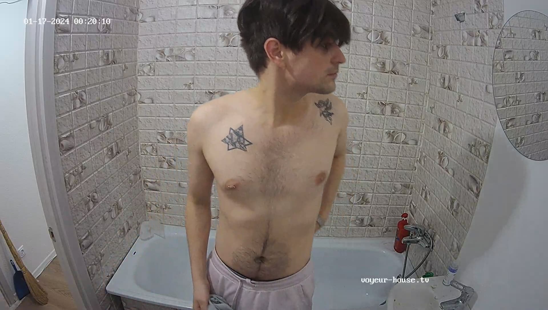 The long haired guy who s___ps on the couch walked in on Tristan masturbating himself and he seemed embarrassed which is odd in that thousands of us were already watching.