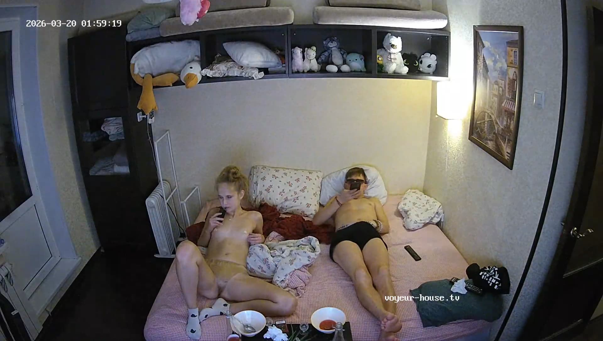 No, as soon as he dismantled cameras 7 and 8, the apartment’s transmission cut off.