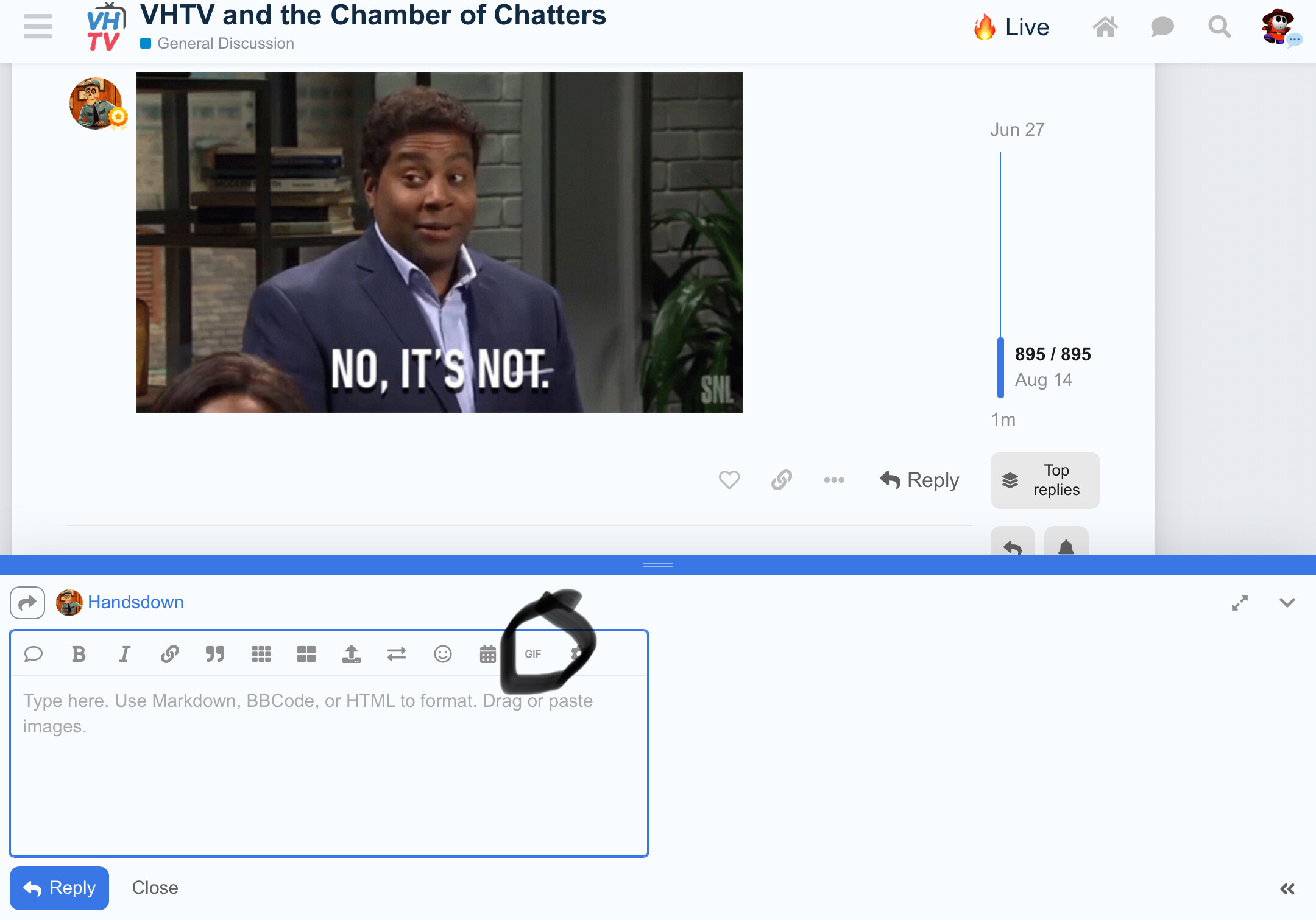 dont know why im so bothered in locating it . i have a personal library of gifs and memes for every occasion all titled so easy to find , saves time searching for one ,and continually adding to it , click upload click my gifs choose gif click reply ,even this doddering old fart can do it