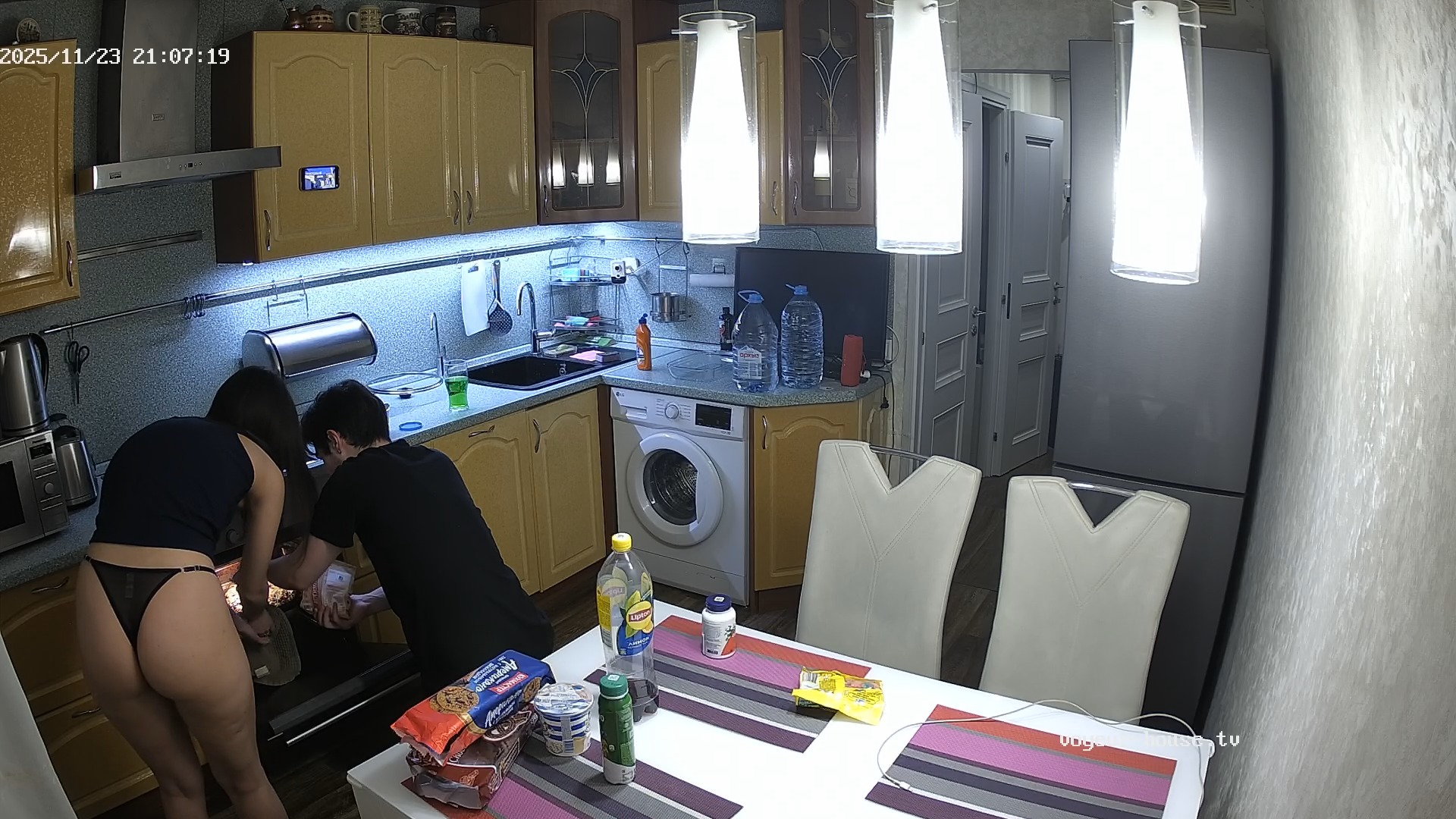 Now, for once, they haven’t used the curtain in the bathroom! And yet, both of them are far, far away from the camera.